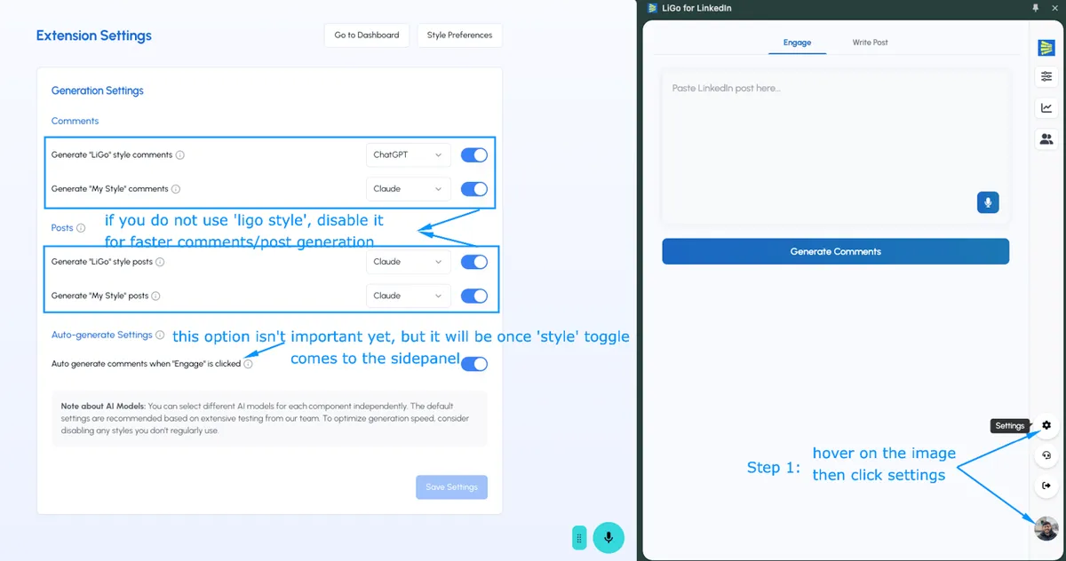 • For instance, if you notice that you hardly ever view the "LiGo style" tab for comments, just disable it (comment generation speed will 2x).